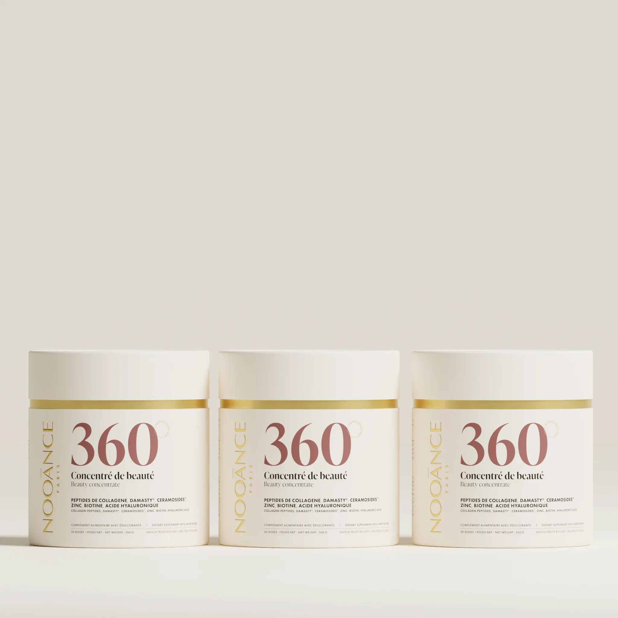 Le complément alimentaire au collagène 360 Concentré de Beauté, soutient la peau contre les signes du vieillissement prématuré. Jour après jour, la peau est visiblement plus ferme, hydratée et éclatante, et les cheveux et les ongles apparaissent plus sains.